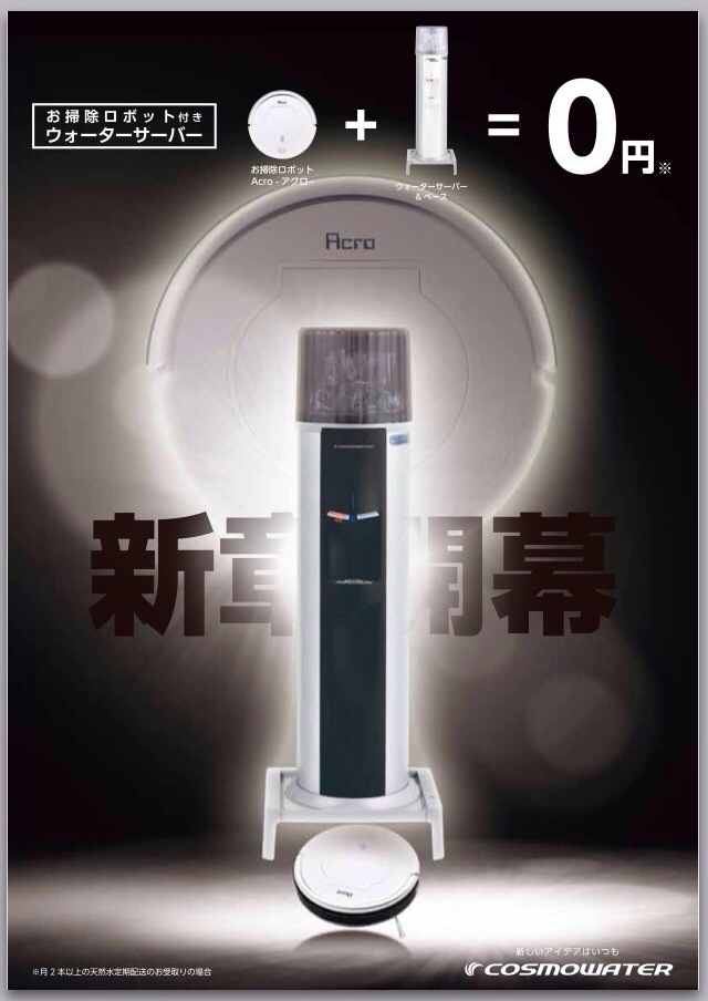 コスモウォーターからルンバ?掃除機付きウォーターサーバーがコスモウォーターから登場!つかえるの??コスモウォーターからお掃除ロボット付きウォーターサーバーがレンタル開始しました!コスモウォーターにちょっと興味があるけれど、お掃除ロボットって電気代はどの位?